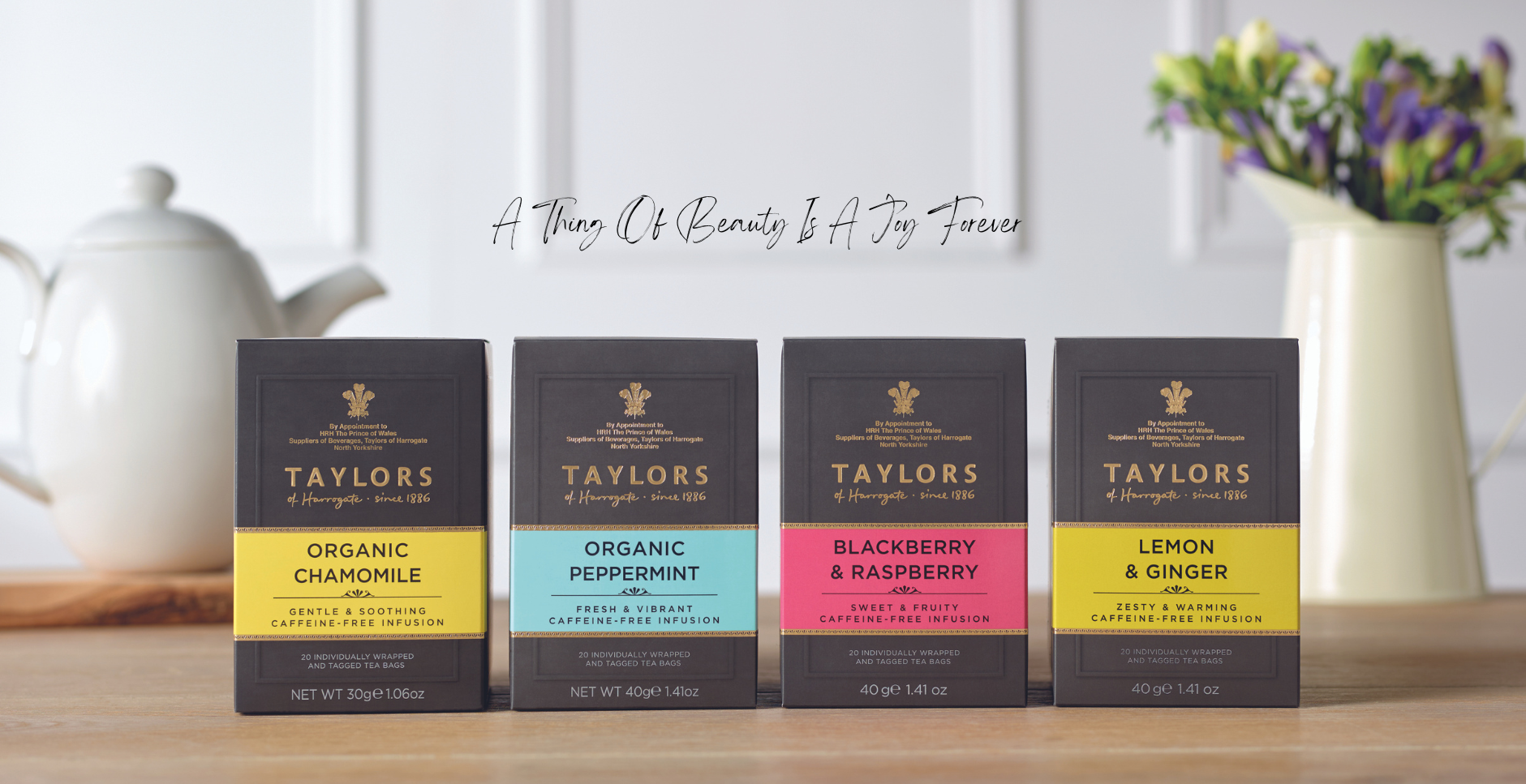 Selectia extinsa Taylors de ceaiuri clasic britanice variaza de la ceaiuri negre, selectate la varful sezonier, pana la amestecuri organice si decofeinizate, ceaiuri verzi elegante si infuzii racoritoare din plante. Gama Taylors este vanduta în prezent in peste 35 de tari din intreaga lume, unde Yorkshire reprezinta al doilea cel mai bine vandut ceai negru si cu cea mai rapida crestere de pe piata din UK.