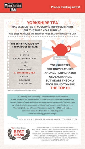 Yorkshire Tea este cel mai apreciat ceai de la Taylors of Harrogate. Al doilea cel mai bine vandut ceai negru si cu cea mai rapida crestere de pe piata din Marea Britanie. Este unul dintre cele mai premiate si apreciate ceaiuri de la Taylors, si acest fapt se datoreaza in mod special calitatii superioare a frunzelor de ceai, dar si a modului de preparare realizat de specialistii Taylors.